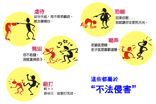 言詞虐待:用言詞、語調予以脅迫、恐嚇,以企圖控制被害人。如謾罵、吼叫、侮辱、